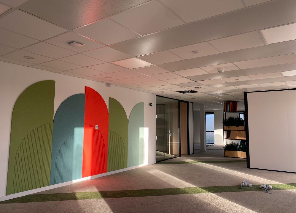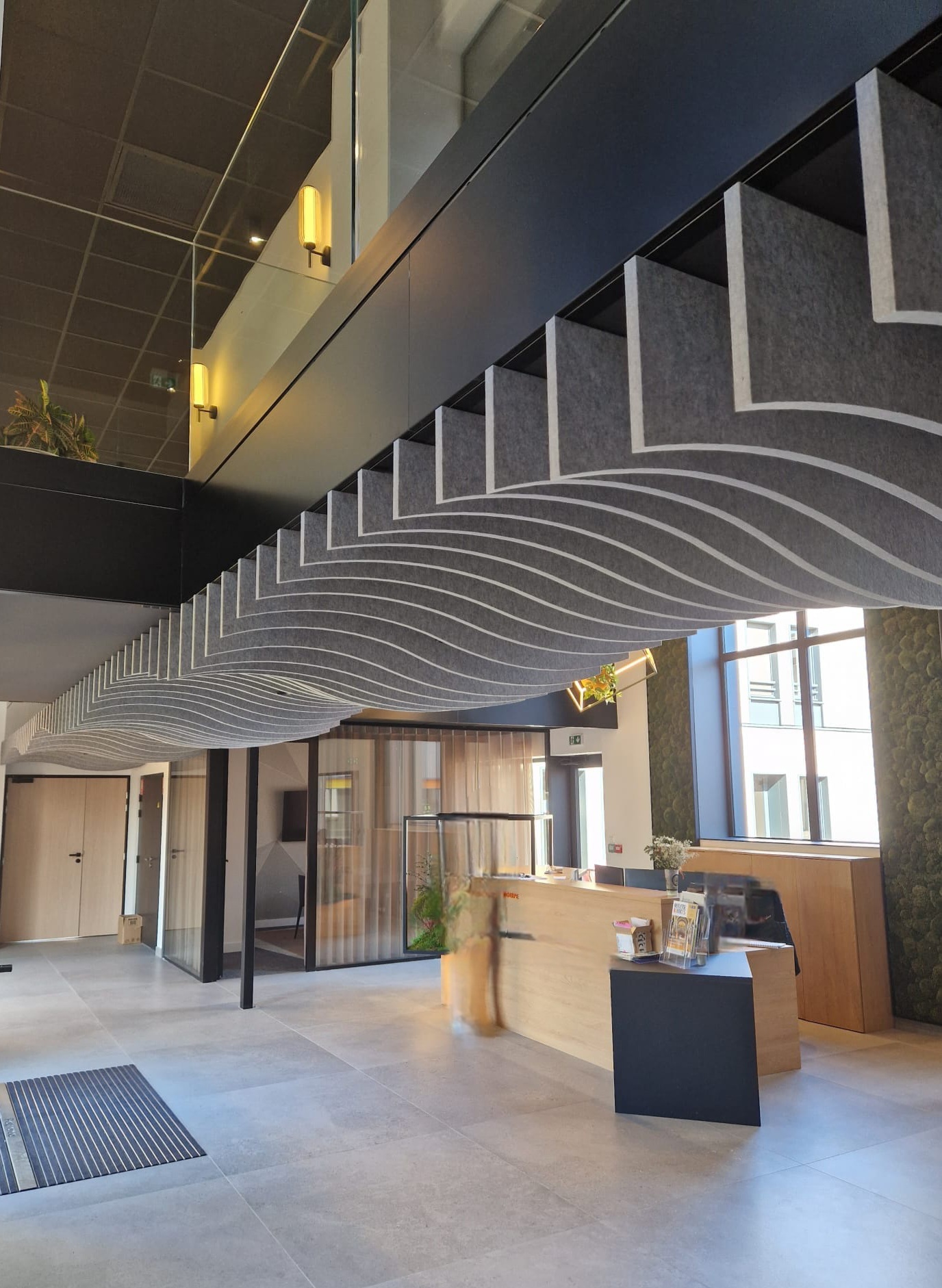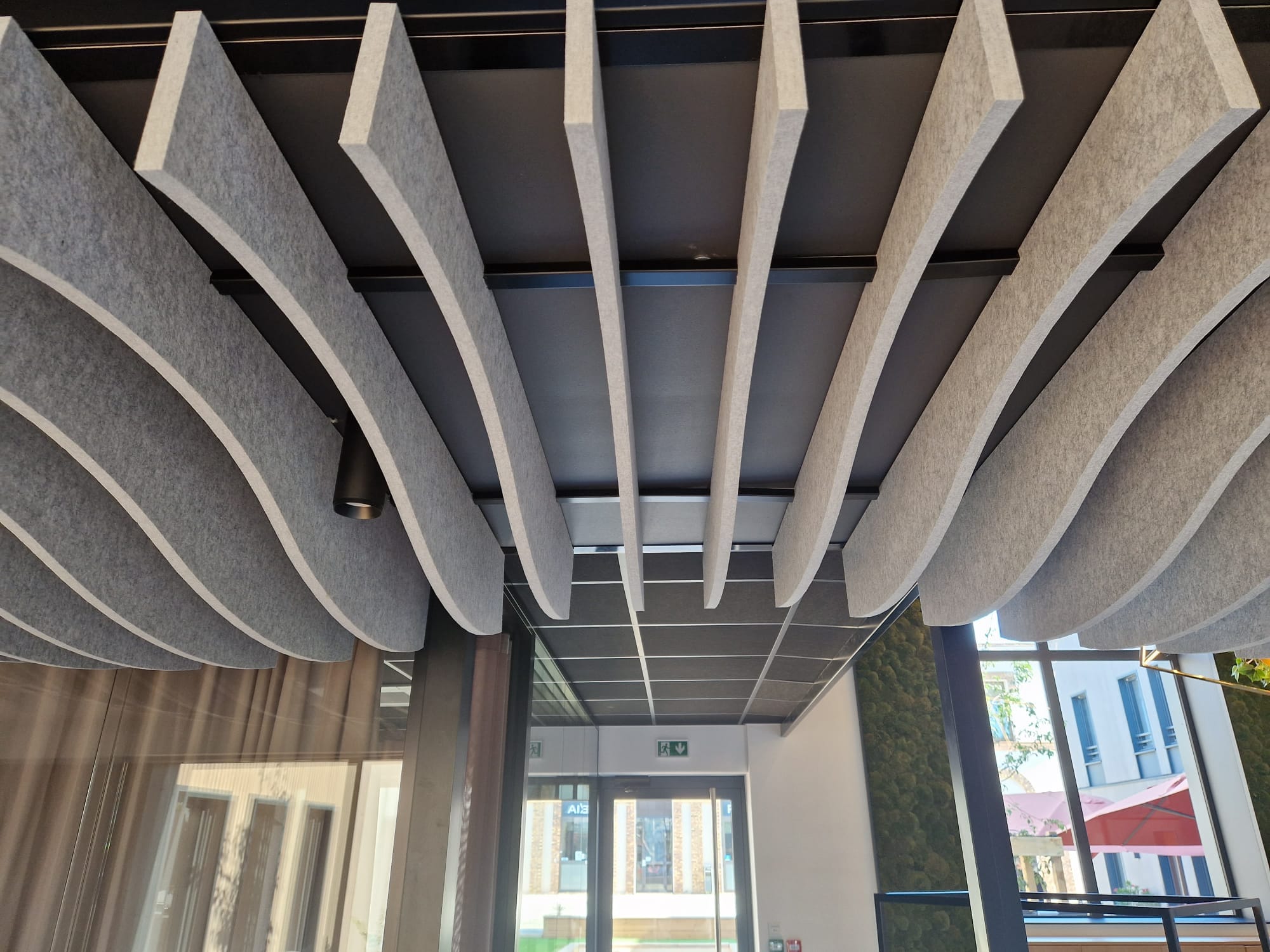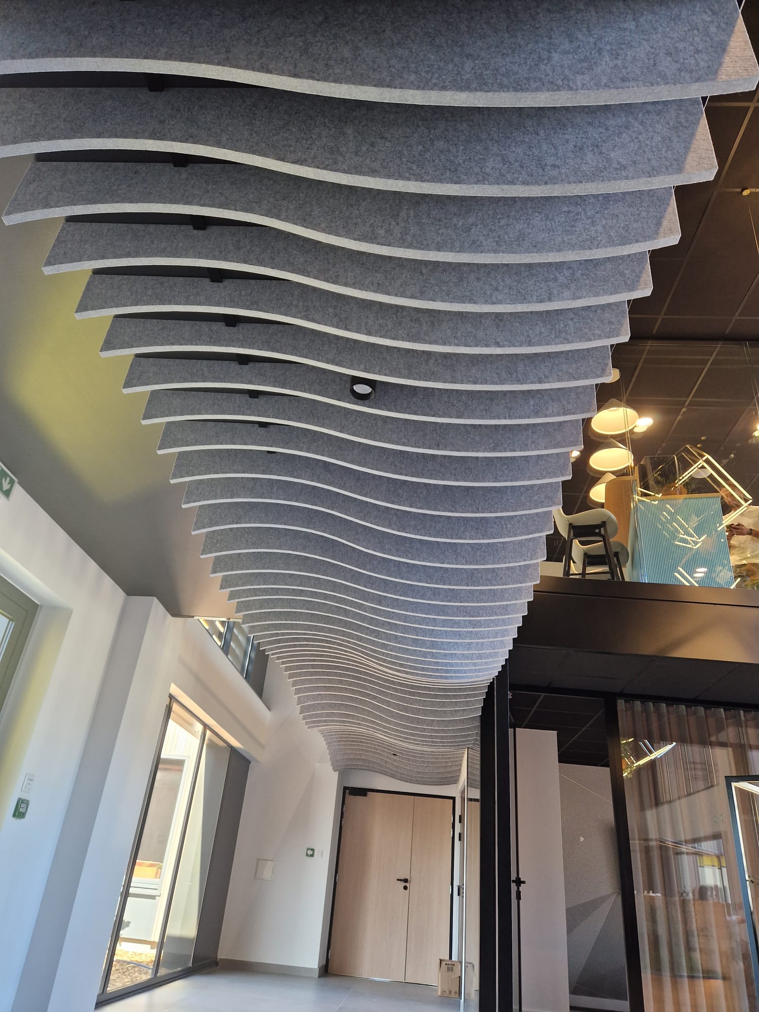 - La diversité de solutions : nous savons fabriquer des panneaux acoustiques suspendus horizontaux, des luminaires acoustiques suspendus, des panneaux acoustiques suspendus verticaux, des panneaux acoustiques muraux, des cloisons acoustiques sur pieds ou sur roulettes, des cloisonnettes acoustiques posées sur postes de travail et des baffles acoustiques.